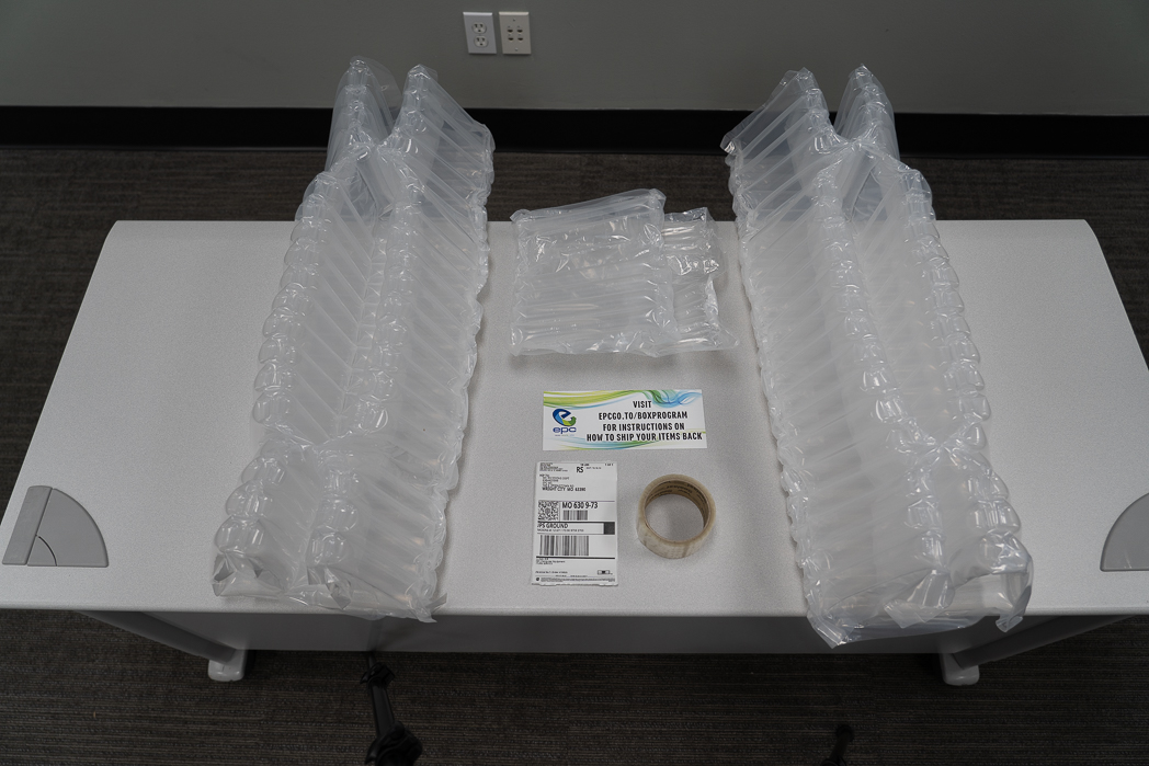 Your box will include 2 Side bubble packs, Either a Base Bubble pack or regular bubble wrap sheets, a roll of tape, return instructions, and a return shipping label.