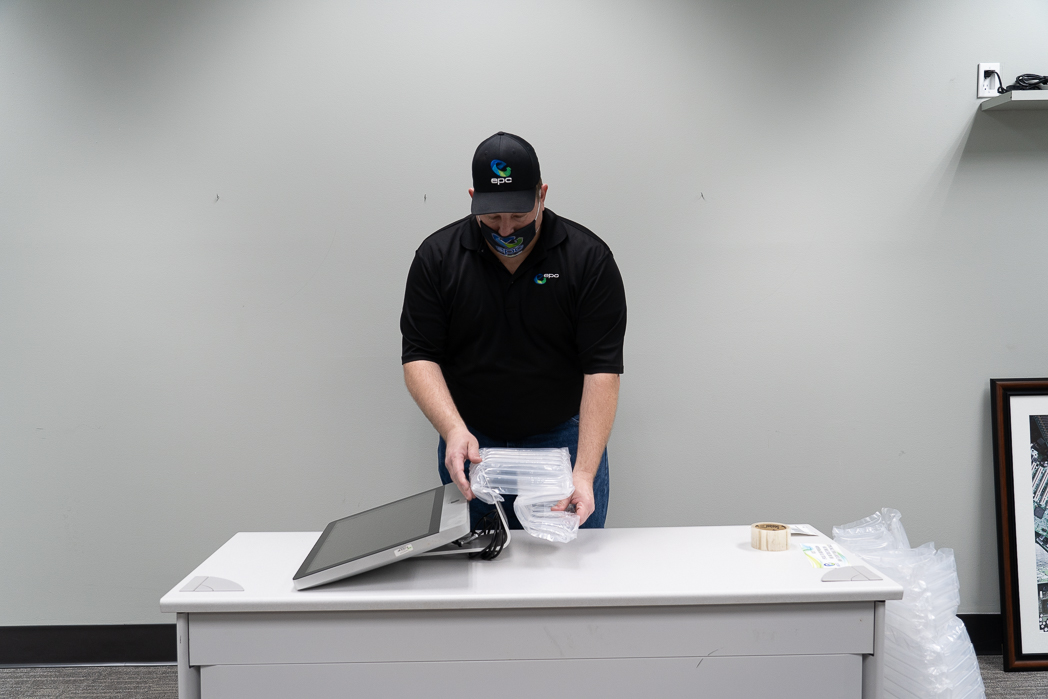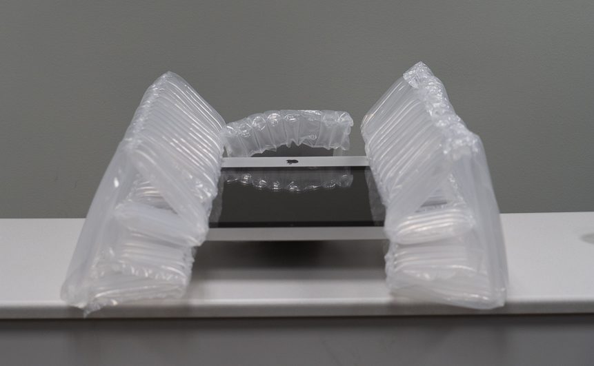 Begin with the smallest bubble pack (or) sheets of bubble wrap and secure the base of the all-in-one computer.