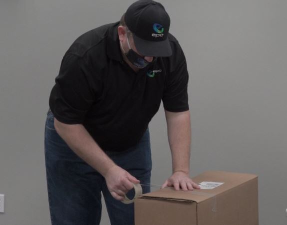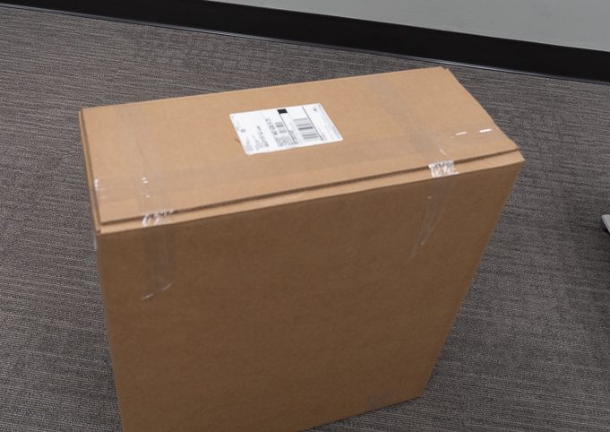 Once the box is secure, take the provided return shipping label and place it over the existing shipping label on the box. It is important that no part of the previous shipping label is visible.