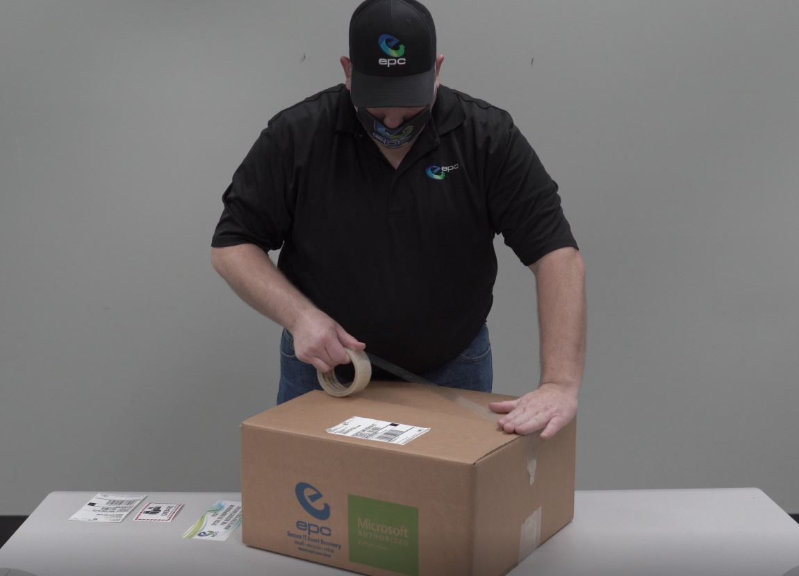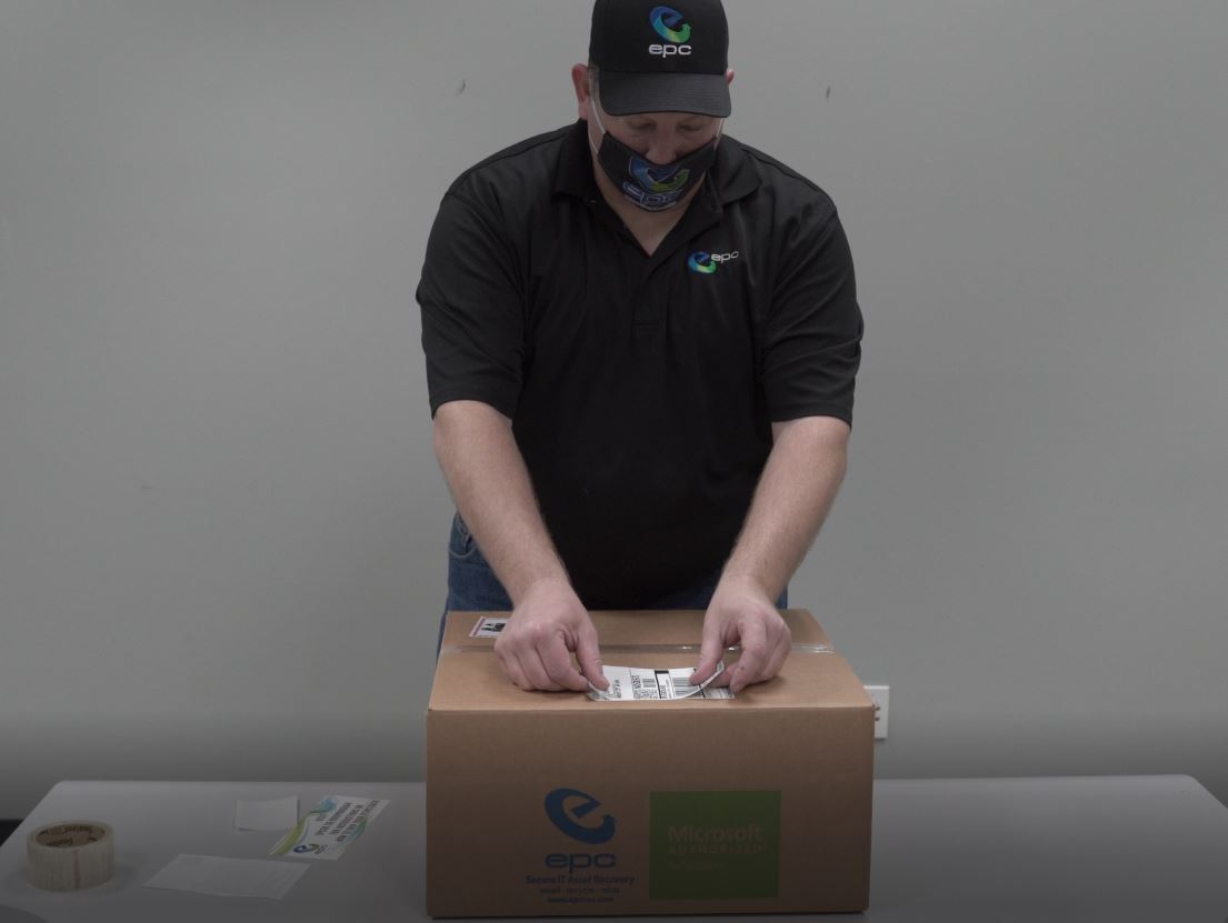 Once the box is secure, take the provided return shipping label and place it over the existing shipping label on the box. It is important that no part of the previous shipping label is visible.