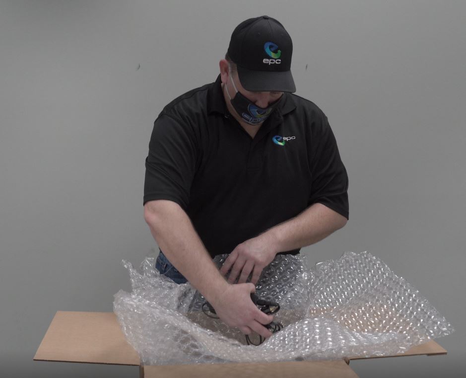 Place the laptop inside the provided bubble pack. It is important that you do not tape the bubble pack shut.