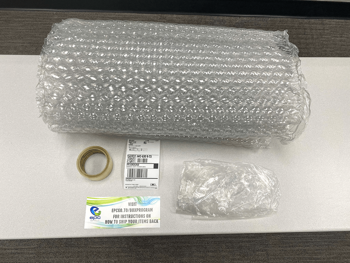 Seal the box with provided tape. Once the box is secure, take the provided return shipping label and place it over the existing shipping label on the box. It is important that no part of the previous shipping label is visible.