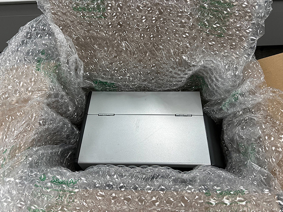 Fold Bubble over the top of the printer and tuck down the sides. Ensure that nothing inside the package will be moving while it’s in transit. The fit of all components inside the box should be snug.